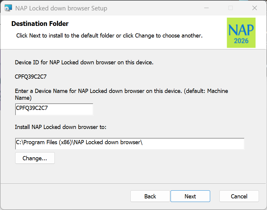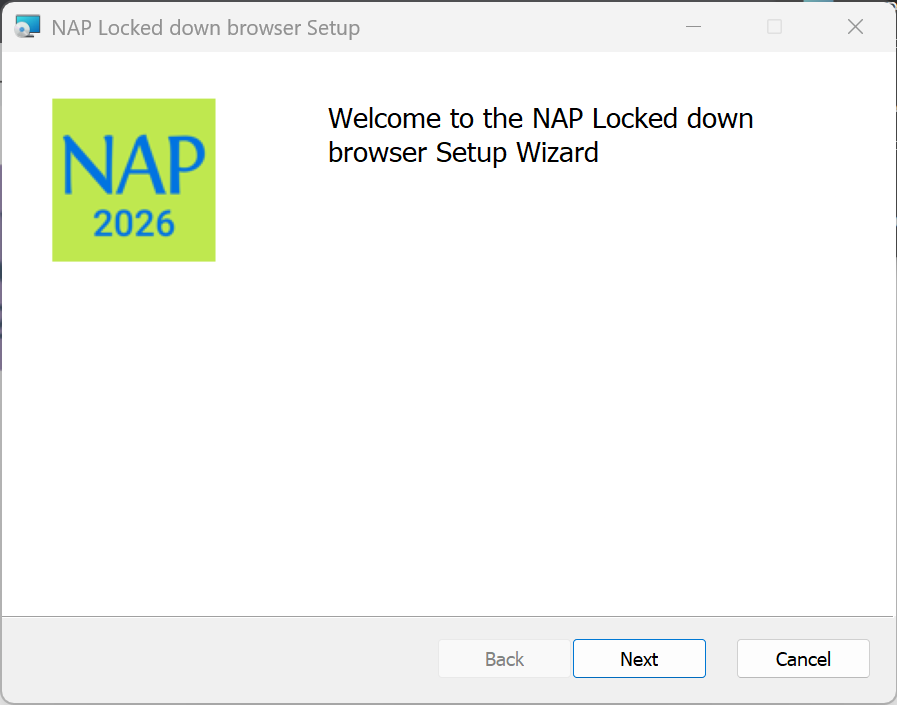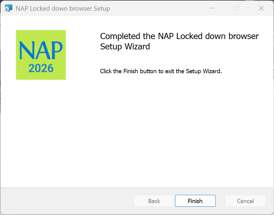 7. Verify that the NAP Locked down browser shortcut is available on the Desktop.